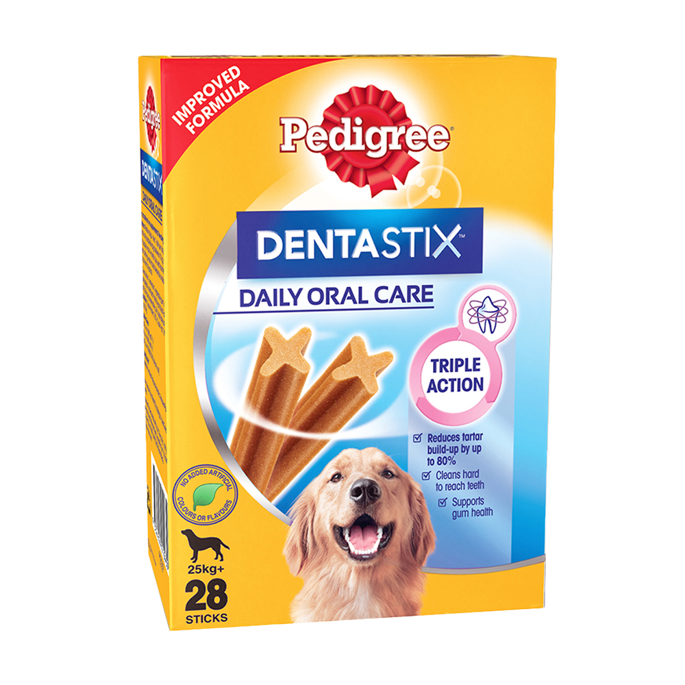 Did you know that 4 out of 5 dogs over the age of three suffer from gum disease? PEDIGREE DENTASTIX is an effective daily oral care dog chew treat that is scientifically proven to help reduce tartar build-up in your dog’s teeth by up to 80%. PEDIGREE DENTASTIX is available for adult dogs of all breeds and sizes : Small, Medium & Large