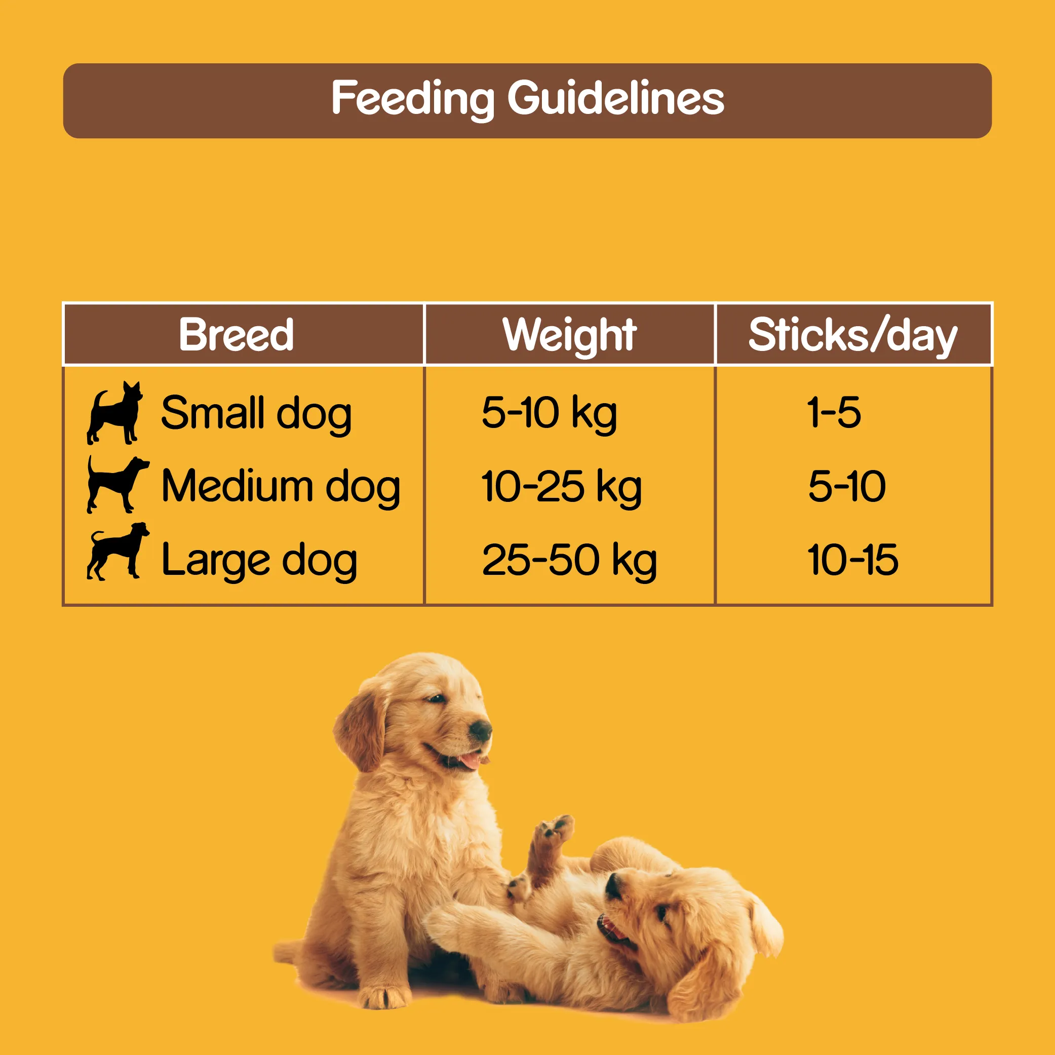 Bring joy to your dog’s day and get closer to them with healthy and tasty Pedigree treats. Pedigree Tasty Jerky Grilled Liver Flavour dog treat is a great combination of good taste and soft chewy texture, making this a flavoursome treat to specially share every day. It is a jerky-style treat made with chicken liver cut into long, thin strips and dried, that helps you bond with your dog. Made with quality ingredients, it is a source of minerals & antioxidant (Vitamin E as an antioxidant). Pedigree Tasty Jerky contains Omega 6 and is a high-protein healthy treat (20% more protein as compared to Pedigree Ranchos Super Bones) with low fat. It also contains calcium to support healthy bones. This dog treat which is suitable for dogs over 3 months, perfectly complements your dog’s complete and balanced meals. Feed as per the feeding guide mentioned on the back of the pack, depending on your dog’s breed size. As you open the pack, the irresistible aroma will have your dog at your feet in no time. Share moments of happiness and joy with your dog with the delicious flavour treats from Pedigree.